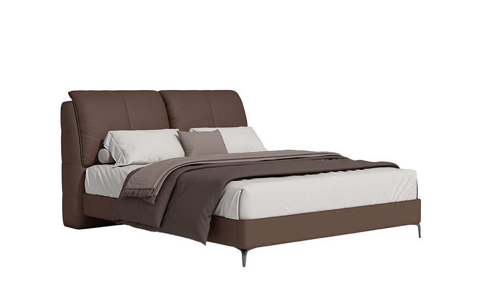 面料:头层进口牛皮、环保皮填充:高密度海绵、混合羽绒床屏主体框架:俄罗斯落叶松床围及侧板:E1级环保多层实木板床铺板:芬兰松木中厚板